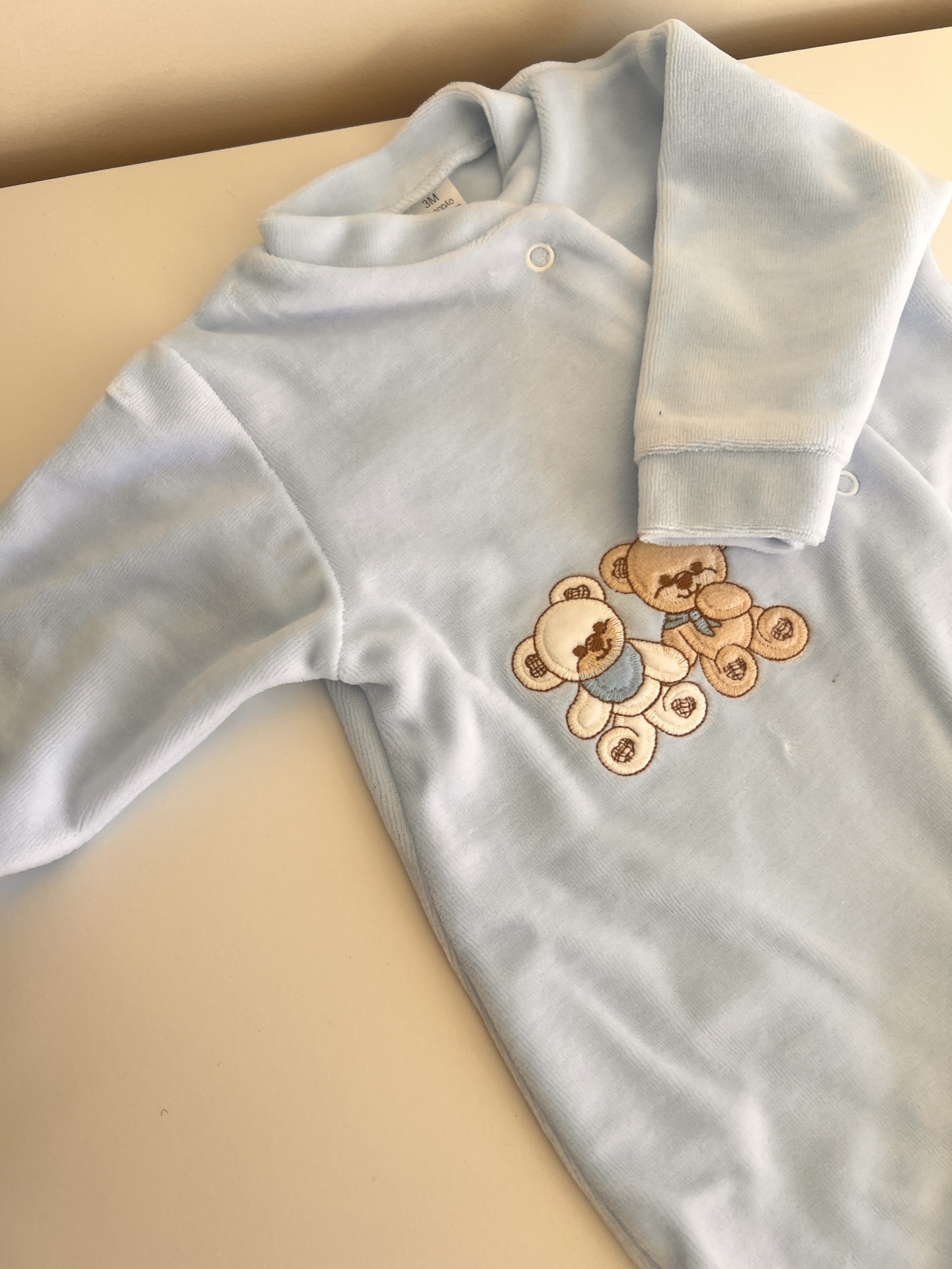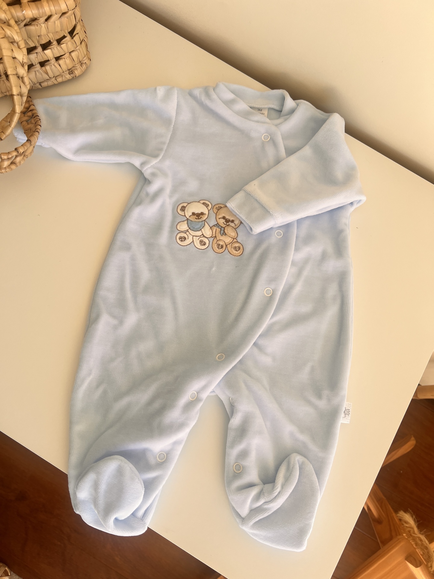 • Macacão de bebé azul claro com ursinhos bordados