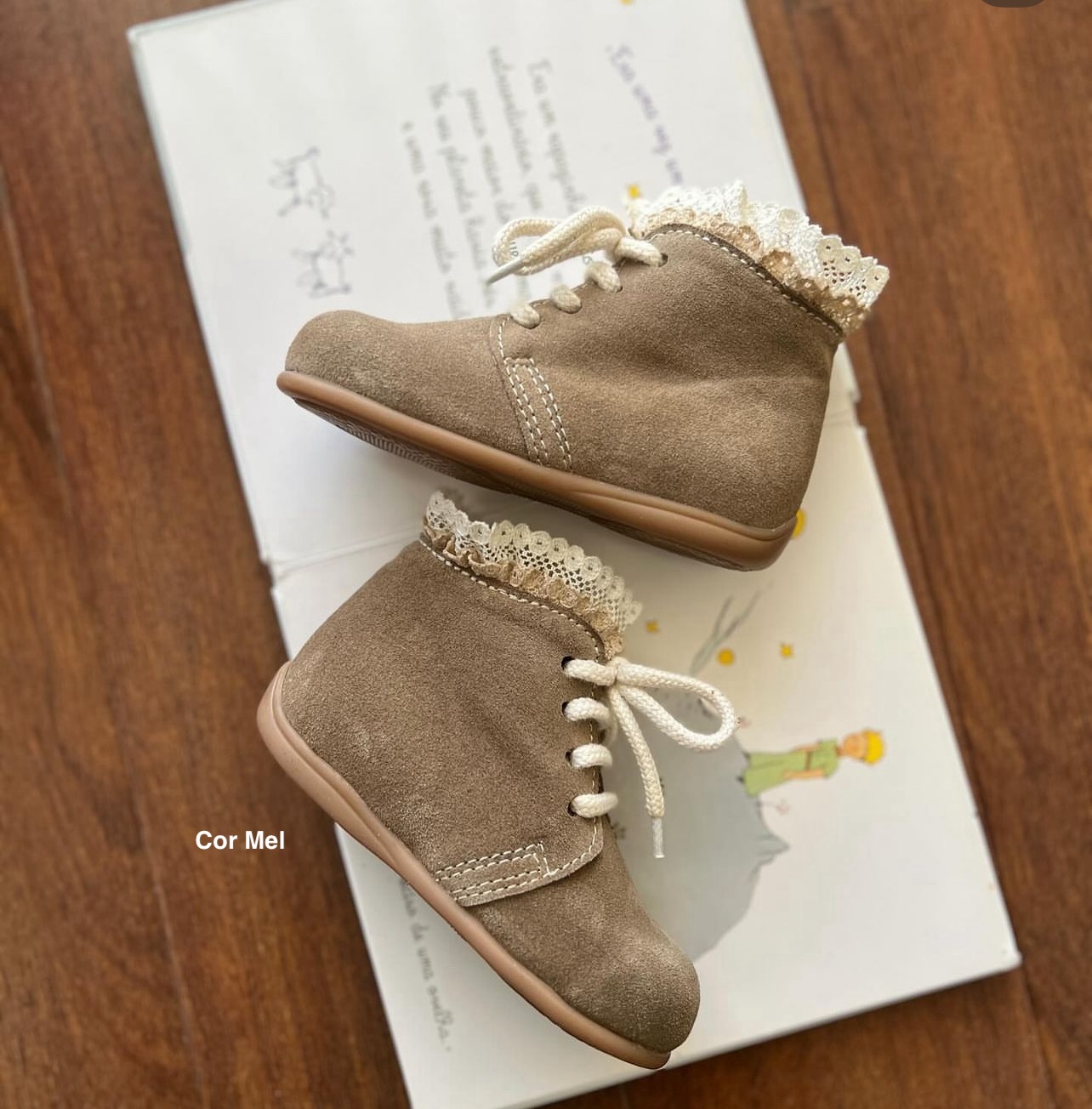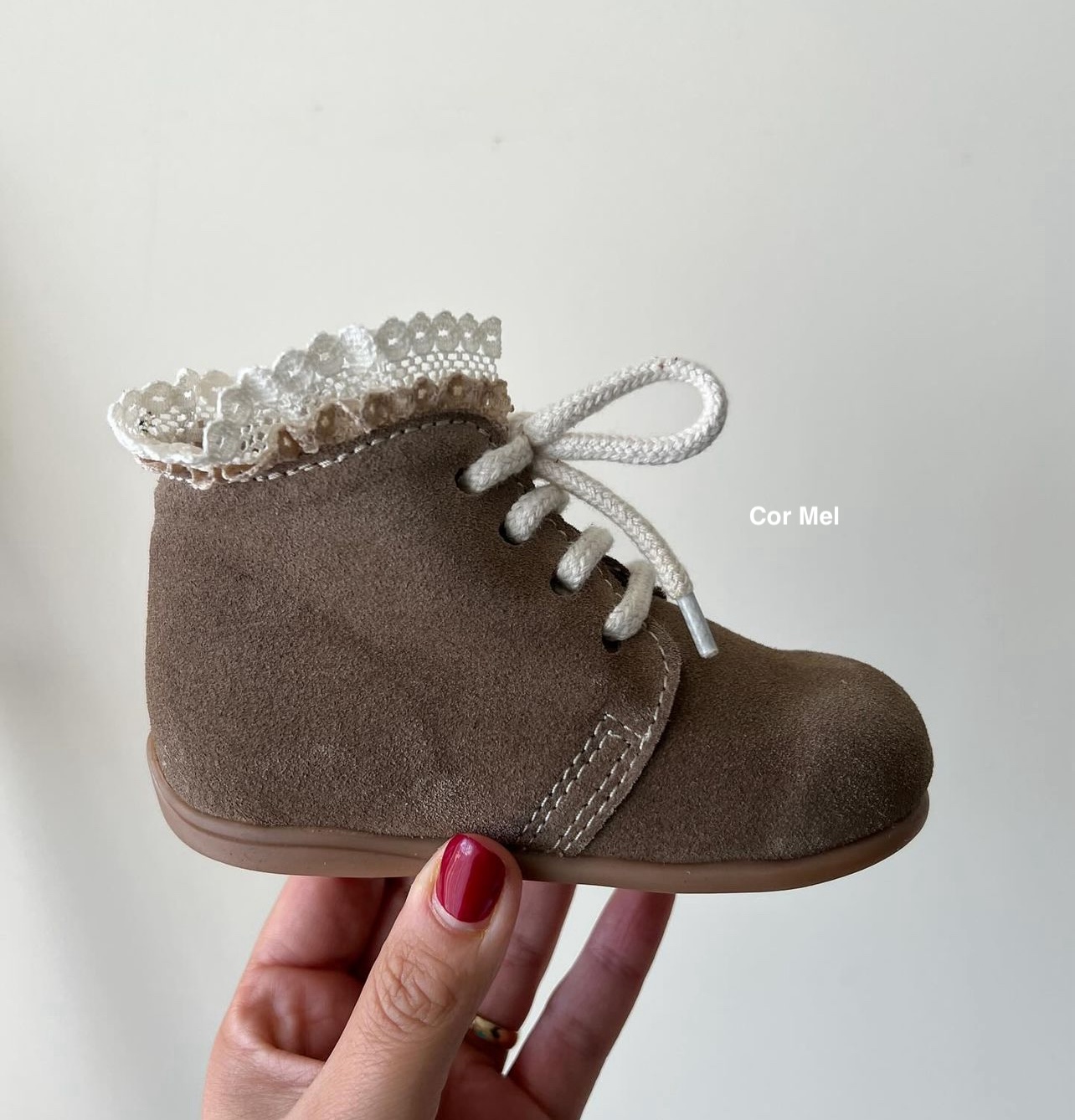 Botinha Renda 30,00 € Desconto de %. Partilhar Tamanho 17 18 19 20 21 22 23 24 25 26 27 28 29 30 31 32 33 34 Cor Botinha Detalhe Cordão Escolha uma opção Cordão Normal Cordão Cetim Detalhe Carneiras Escolha uma opção Sem Renda Com Renda Comprar Contactar Botinhas com renda ou sem renda Aperta com cordões Sola de borracha flexível com ação antiderrapante O nosso calçado é feito por encomenda (15 dias aprox.) Devem verificar sempre os centímetros do pé do bebé ou criança, varia sempre de marca para marca (ver tabela em baixo) Devem indicar a cor pretendida nas observações (Nº da cor ou nome) - (Ver tabela em baixo) Temos também a cor Pérola Camurça - cor Nº 19