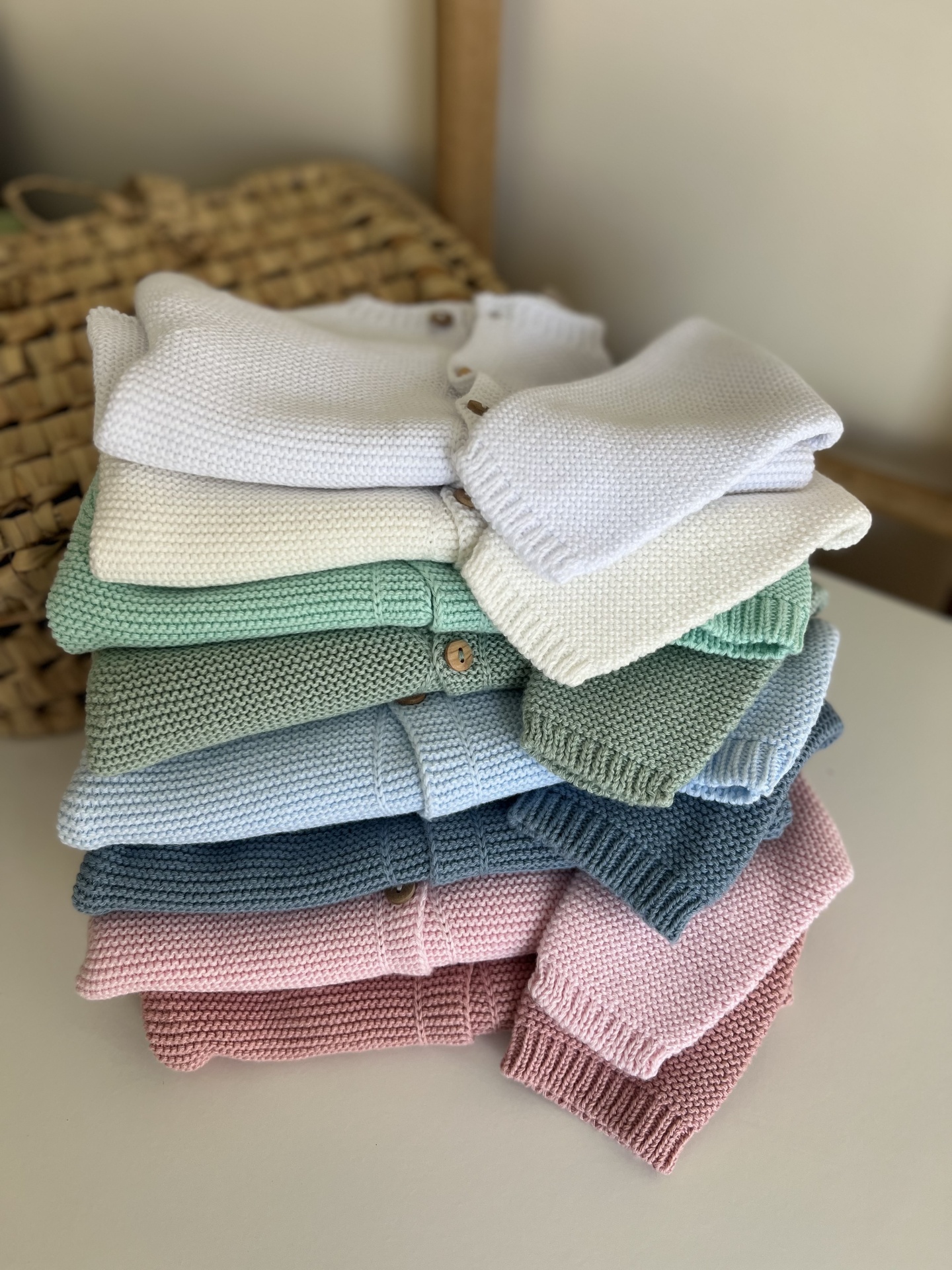 • ROUPINHAS DE MALHA DE BEBÉ EM CORES SUAVES EMPILHADAS