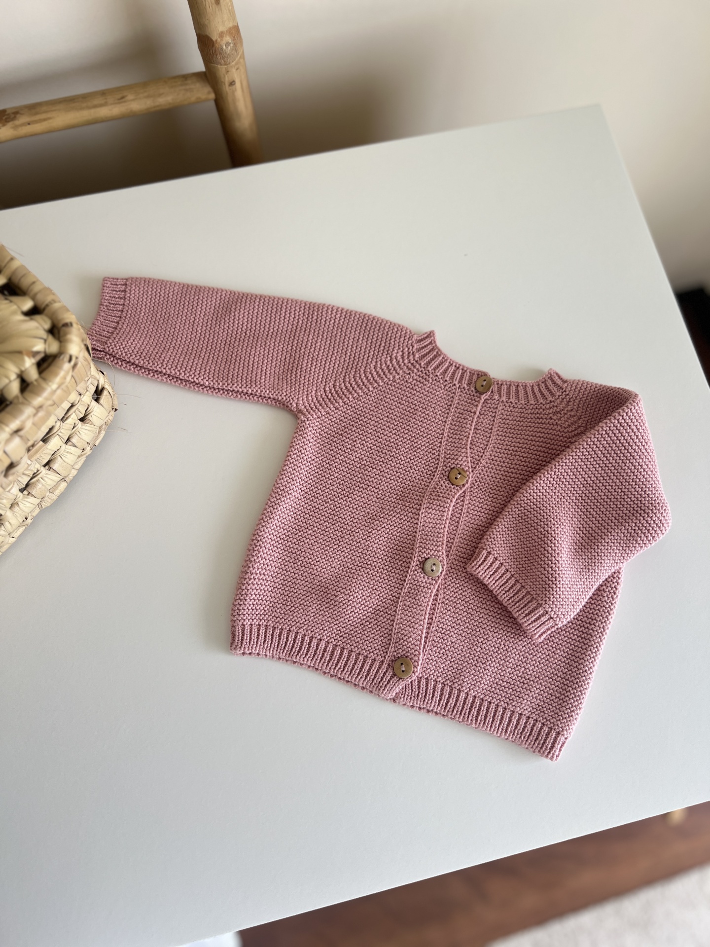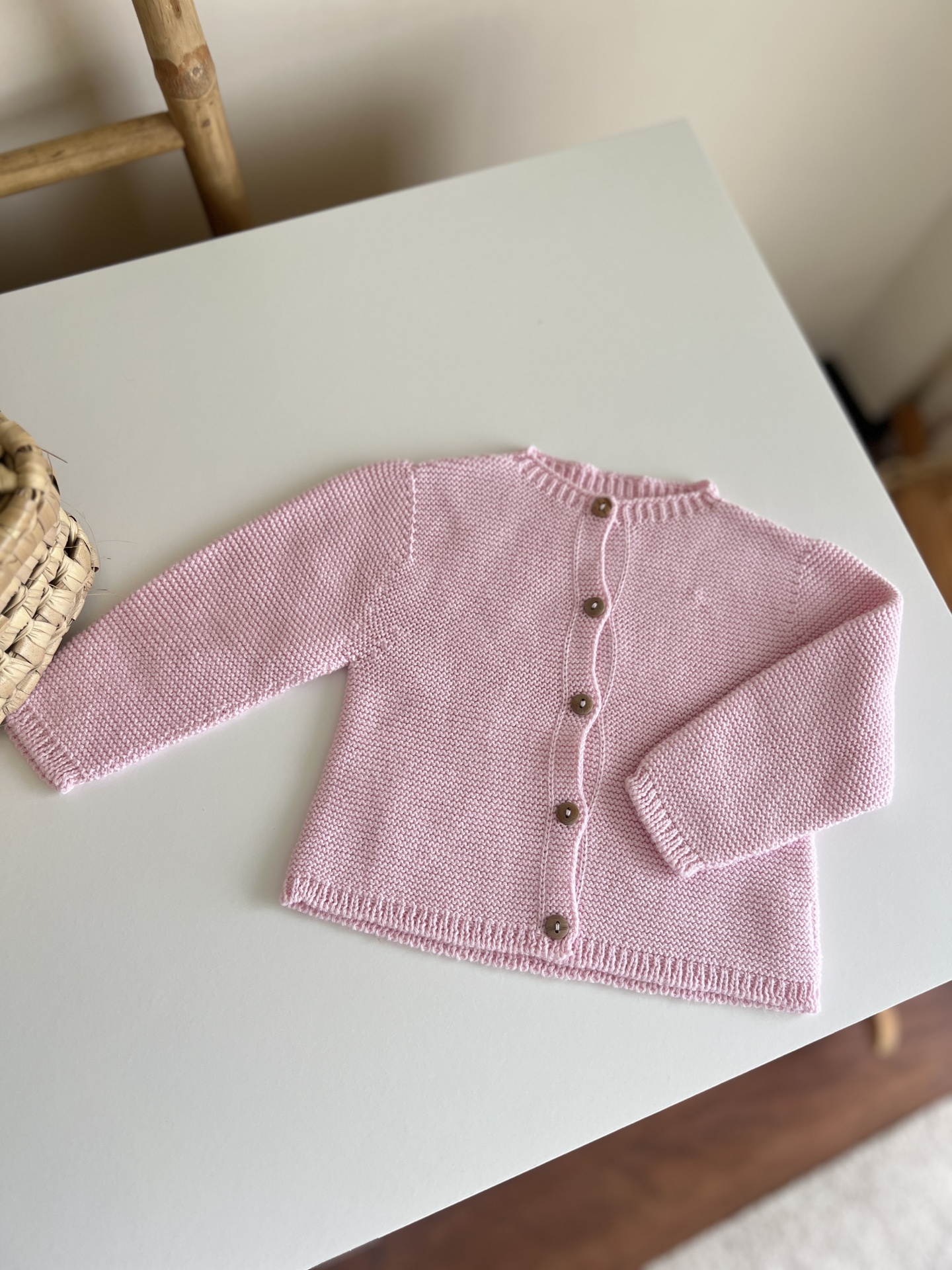 • Casaco de malha rosa claro para bebé com botões de madeira