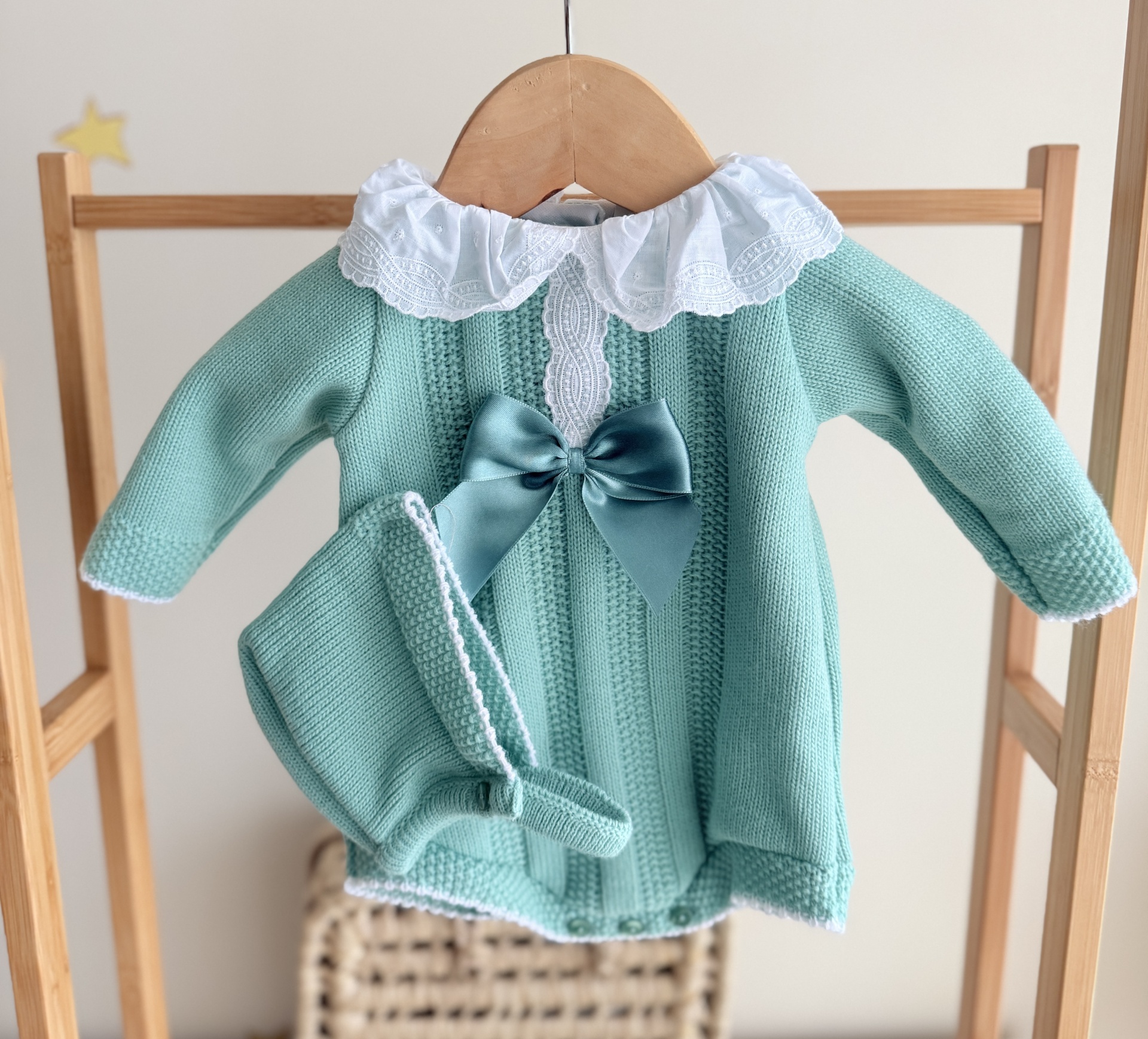 Envolva o seu bebé com o conforto e a delicadeza que ele merece. O nosso conjunto de malha é composto por duas peças irresistíveis: fofo, touca e carapins, todos feitos com uma malha quentinha, macia e suave ao toque — ideal para os dias mais frescos.