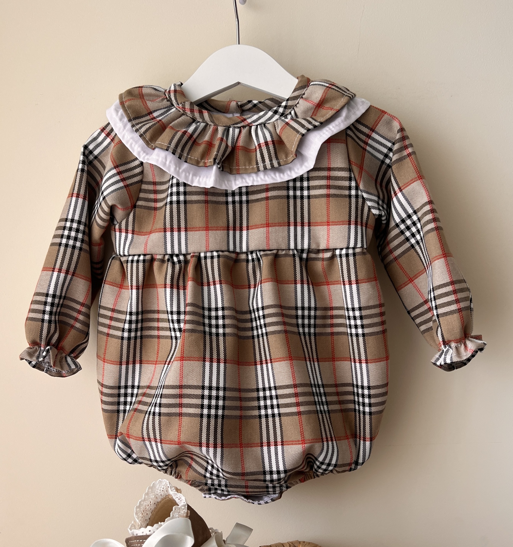 Este fofo no padrão burberrys é a escolha perfeita para um look delicado e sofisticado. Feito em 100% algodão com forro macio, garante o máximo conforto para a pele sensível do bebé.