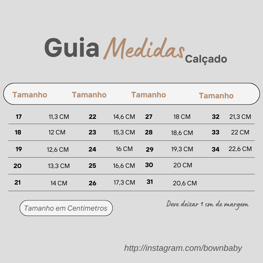 Antes de encomendar: • Consulta o nosso catálogo de cores • Mede o pé da criança e compara com a tabela de medidas em cm para escolher o tamanho certo