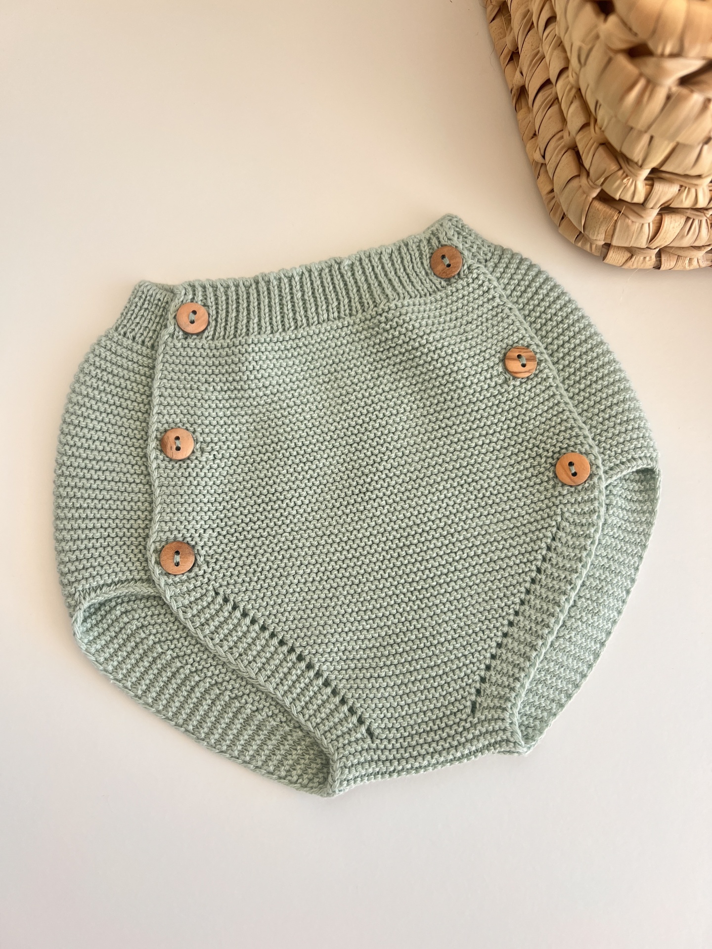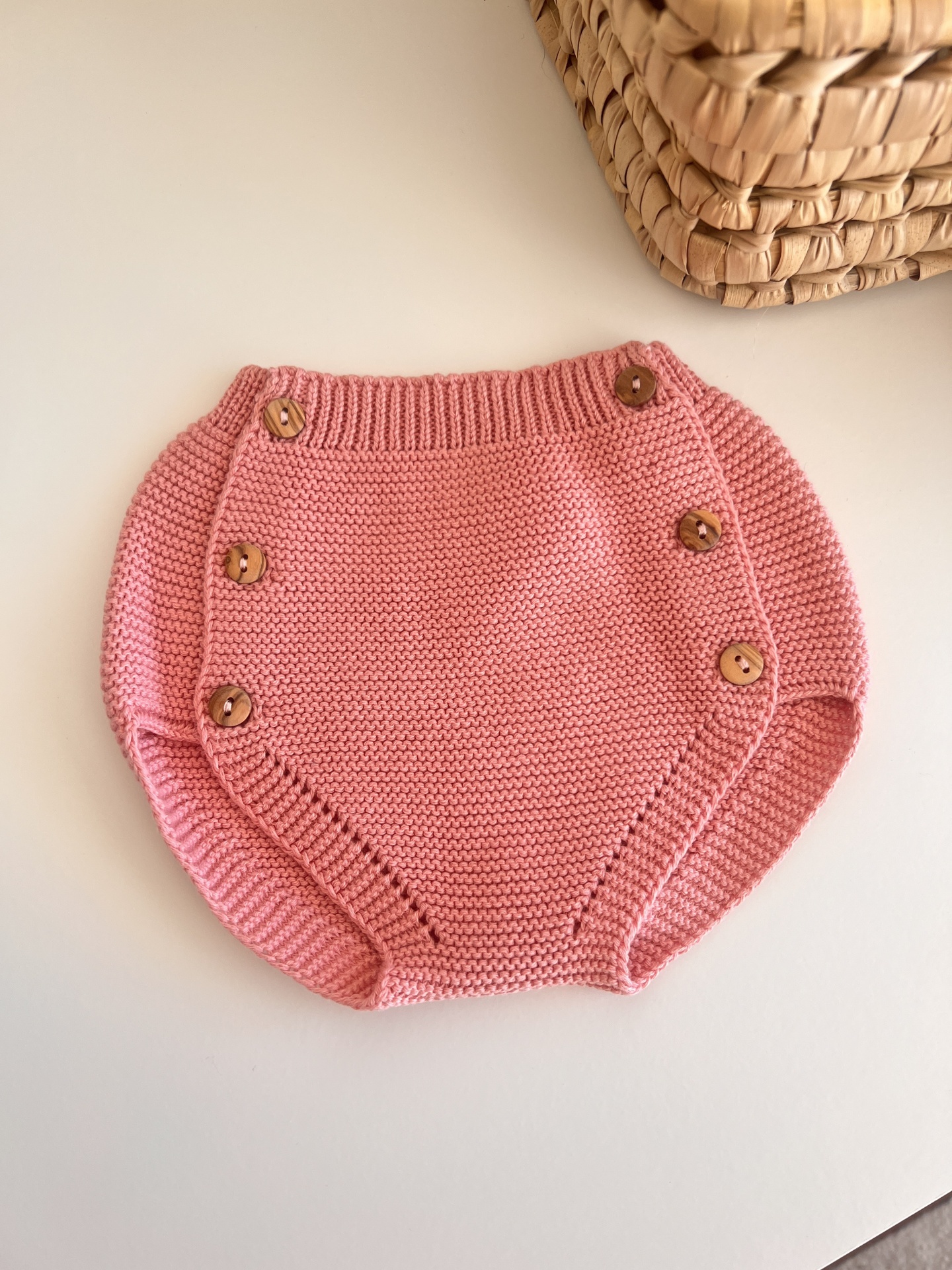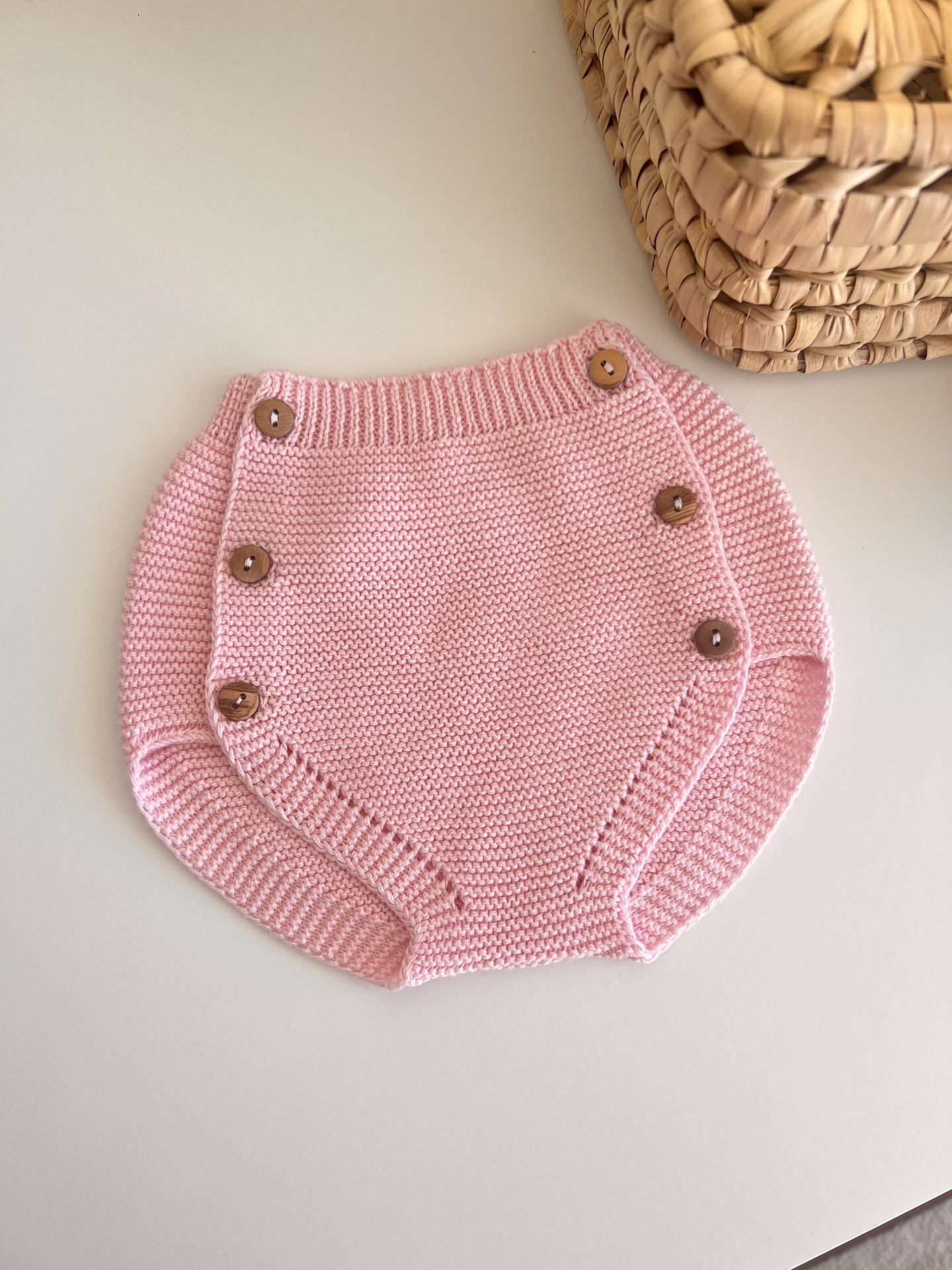 • Calções de bebé cor-de-rosa em malha com botões de madeira